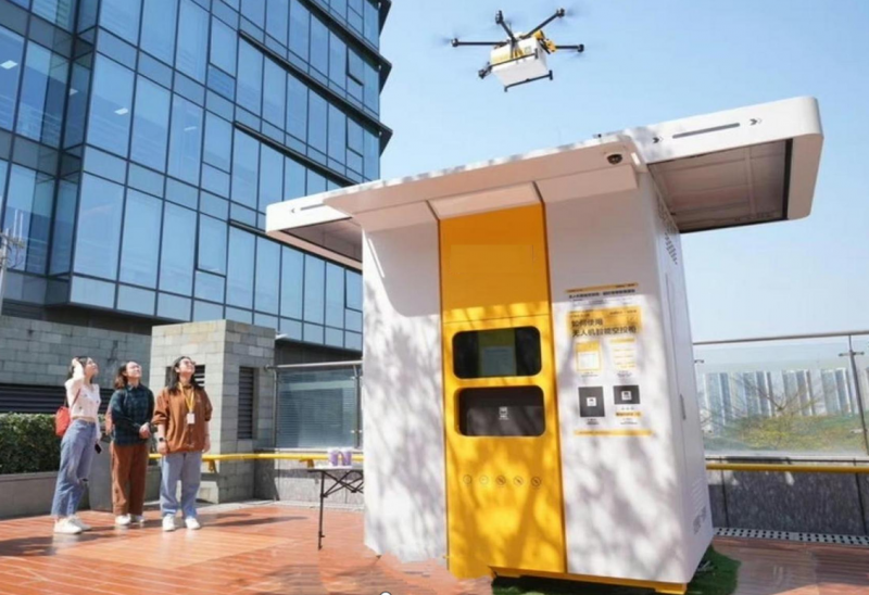 城市建筑之间的无人机班车和剧烈,准确的锚固路线,提供热食或紧急需要货物以有效而安全地消费...